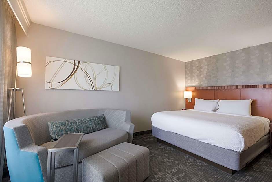 Features a seating area with a sofa bed.